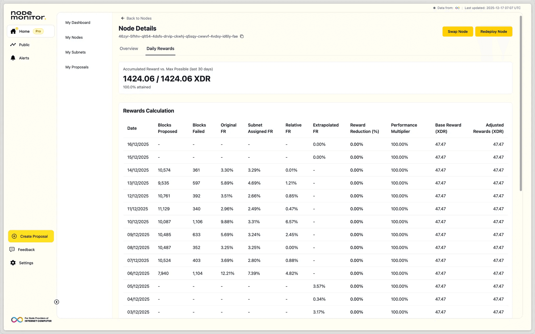 Node Monitor pulls directly from the node reward canister and surfaces every step of this process in a way that’s more easily understandable.