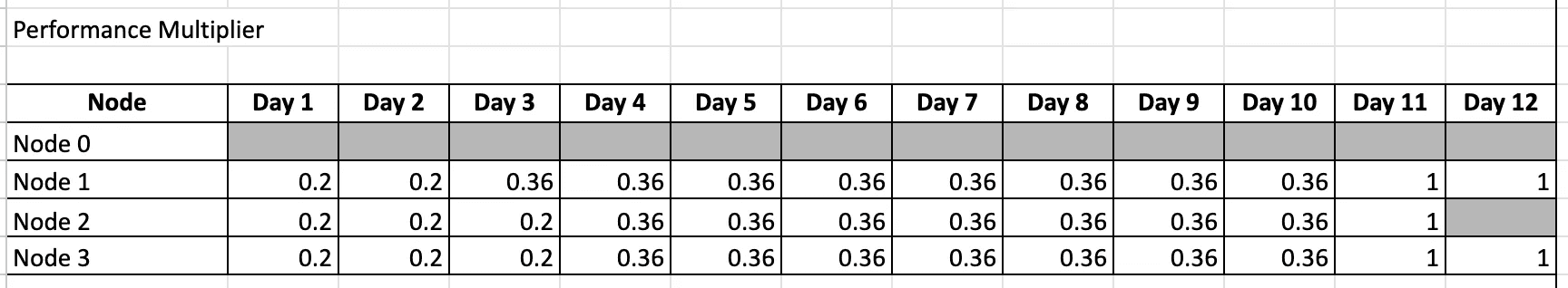 Using the linear formula, we convert failure rates into reward reductions for each node, each day.