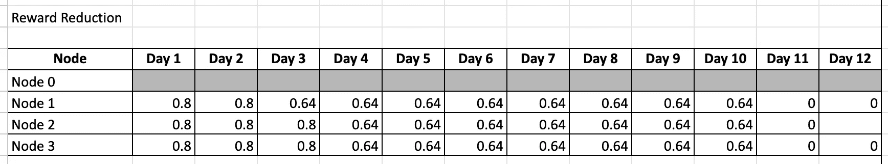 After applying this , the reward reduction for the 3 nodes over the 12 days looks like the following: